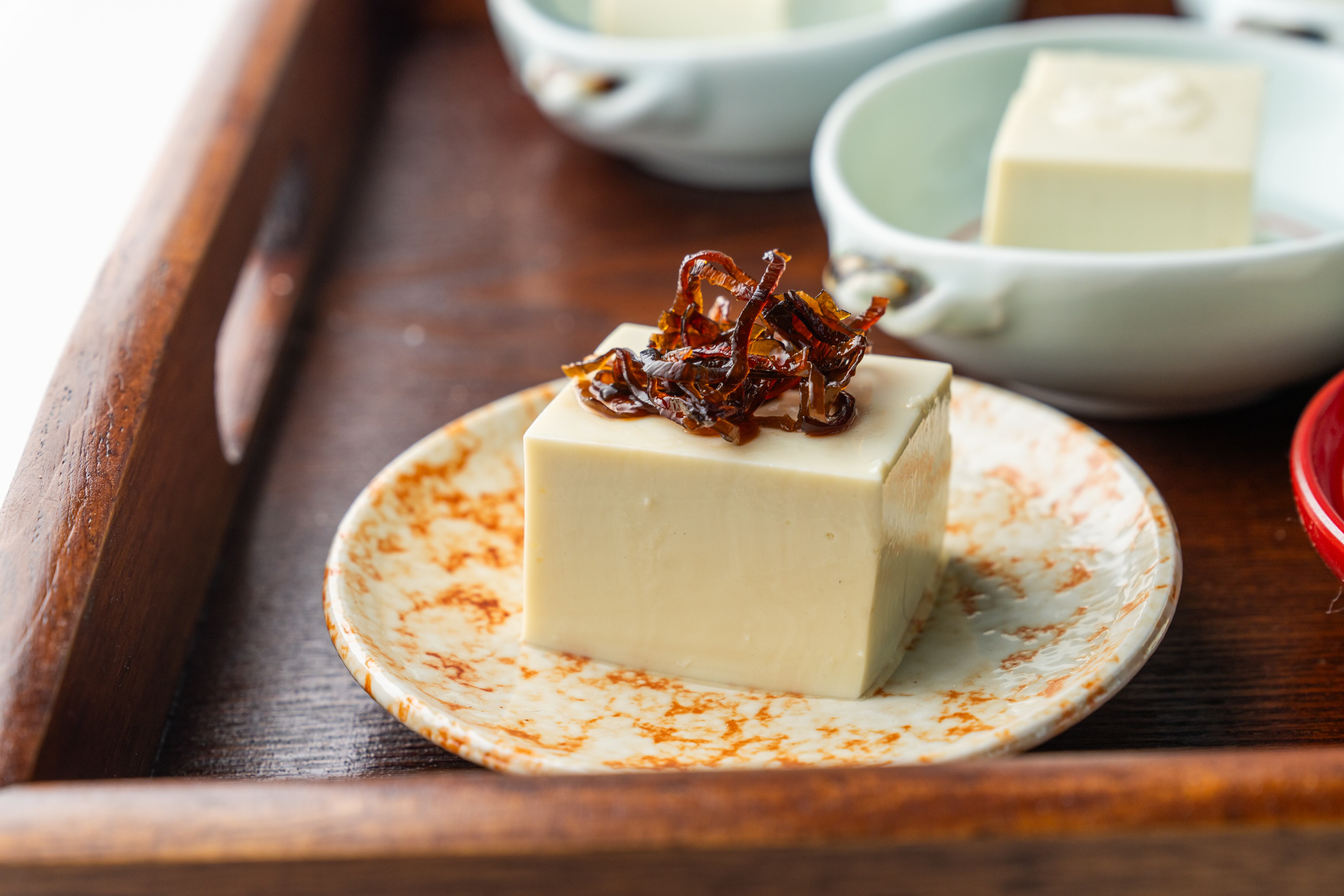 日本百名山荒島岳の伏流水を使い、丁寧に仕上げたお豆腐は、やさしい若草色で