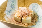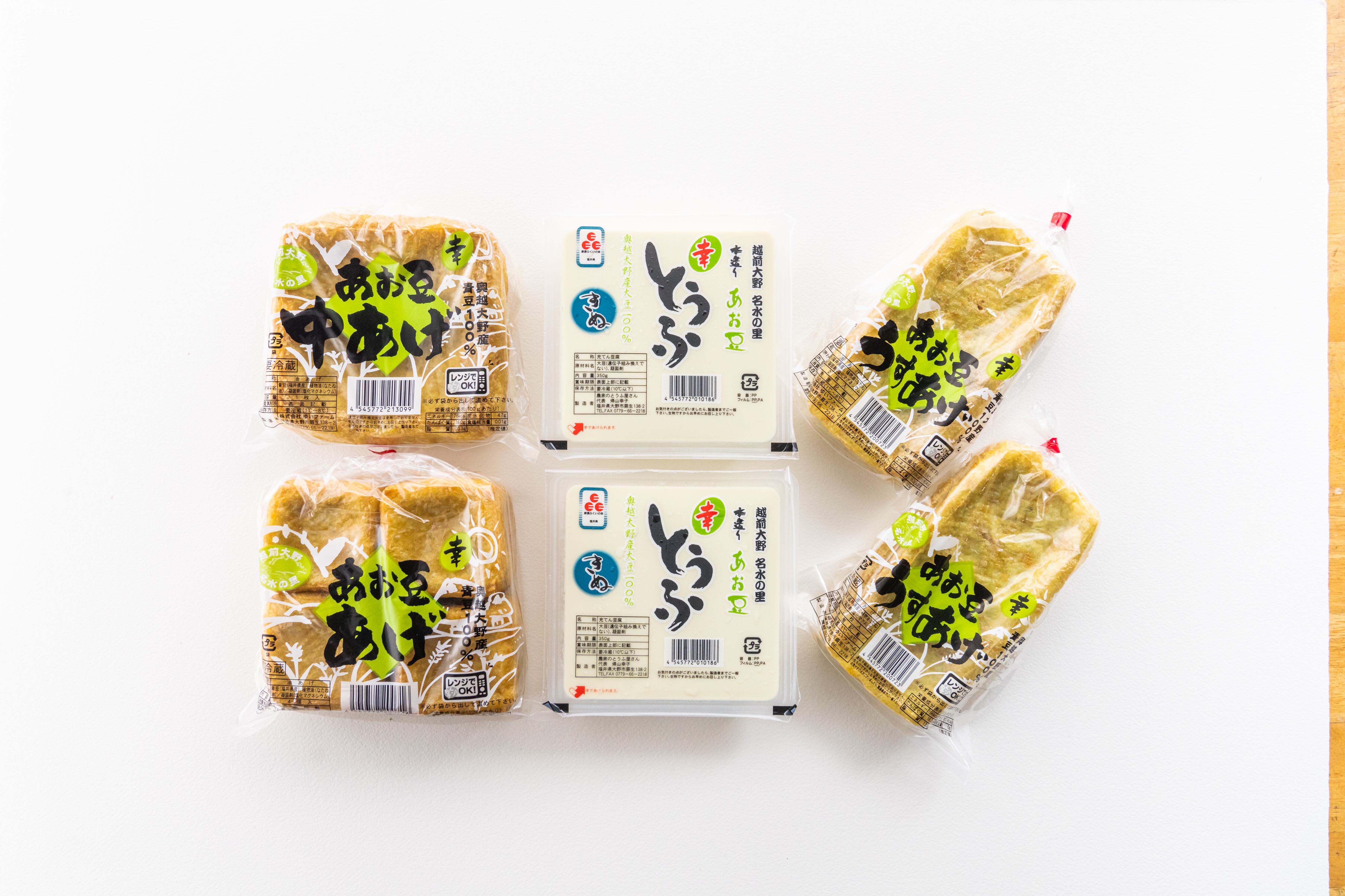 日本百名山荒島岳の伏流水を使い、丁寧に仕上げたお豆腐は、やさしい若草色で